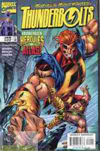 Every comic I have featuring the Marvel version of Hercules has him as a big jerk. I don’t like the guy. That said, he didn’t deserve the level of beating he got at the hands of Goliath. And he refuses to see Erik Josten as a potential hero, even if he goes by Atlas these days. He’s come to basically kill him, and the other Thunderbolts getting involved just makes him even more upset. It takes Hawkeye standing up to him (at the cost of their friendship) for the Thunderbolts to finally trust him (except for Moonstone, who doesn’t trust anybody and has to stop Songbird from revealing what happened in Kronos). So MACH-1 agrees to serve his time for murder, but the newspapers have gotten wind of Hawkeye helping MACH-1 and Songbird escape the National Guard…and the reporter assigned to the story makes it look like he’s joined the baddies, which drops right on the doorstep of the Avengers. [continued in Avengers vol. 3 #12]