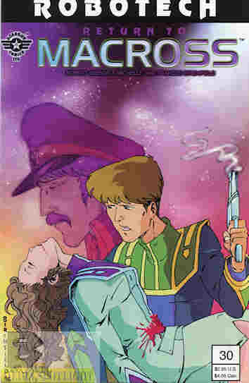Gloval sees an old friend on TV, now a United Earth Government colonel, promoting a decentralized government and privatizing of the RDF. (Geez, I know die-hard conservatives and libertarians, in business mind you, who don’t want to privatize the military.) This causes him to flashback to an event depicted in a photograph. He and the man, Wendell Hamilton, were serving aboard a ship about to launch (or at the port, one of the two) when they stumble upon a dead crewman. They found a group of terrorists planning to publicly sabotage the launch and were holding a woman Henry was interested in. Henry and Wendell managed to rescue Amanda and ruin the saboteurs’ plans, but the villains escaped when Wendell was shot in the leg. In the present Admiral Hayes calls in to check in on the security procedures and reports that he’s personally coming to inspect the situation. However, the Salamander managed to hack into the call and Da Silva’s bosses now know the brass is coming. What they don’t know is Salamander is looking into his new employers.