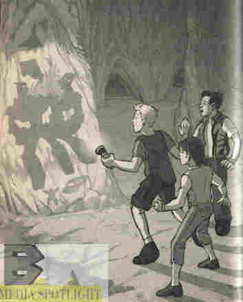 The title refers to one of the adventurous titles the kids are giving to their quest, which makes me wonder if they’ve seen some kind of serialized program in the style of old movie serials, I haven’t seen that since Read All About It went off the air, a few Filmation shows being the only other time I’ve seen it used regularly seriously. (There may be some show I’m forgetting though.) As they explore a cave they find some drawings I’ll come back to, which they believe Fred and Billy caused, but when we cut to them they were never up here. Interesting.