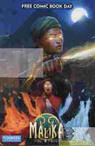 I had more time to read it properly this time but I’m still missing some serious information here. The best I can gather is that thousands of years ago some guy was turned to stone before he could unleash evil on the world tied to some weapon he called Dragon’s Doom. While and his wife(?) Aya were eternally cursed to remain on “the forbidden island” she wasn’t stone and could send her daughter to gather the Dragon Stones that were used to create his stone prison so that he can use the Dragon’s Doom, powered by man’s own hate and rage, to conquer the world. Cut to 2025 and our title character, Malika, is after one of those stones in Egypt but the Grandmaster and her Olon Jin minions who have been trying to gather them learns of her find. As the Grandmaster confronts Malika they end up teleporting into the path of Eliza Mantel, a martial arts expert who was dragged to a steampunk convention in London by her friend Charles. The stone grants her fire and ice power until she collapses.