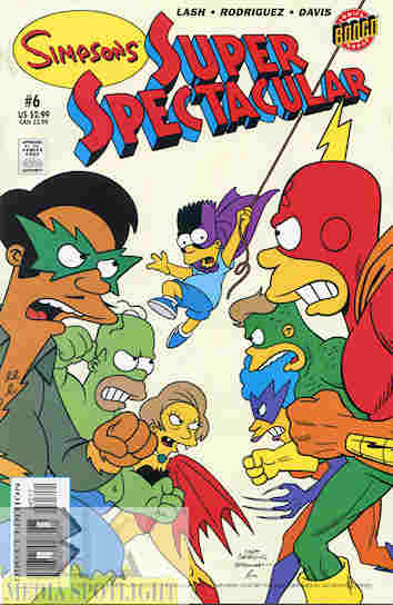 What they got right: The superfied Simpsons cast ideas are pretty good choices. (Homer even gets to eat a plane.) Of course Plasmo wiped their minds of the adventure although since Bartman has met them before (I don’t know what issue but I want to read it) I would hope he and Milhouse at least remember it. The concept itself is solid, and while there is a bit of catharsis in dealing with the gritty makeover writers it doesn’t interfere with the story the way some writers these days do when they want to make a story about attacking what they don’t like–especially critics of their “great” work.