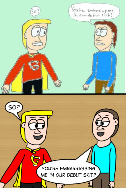 Over on my deviantART page I posted a remake of the one panel preview for the Jake & Leon comic to highlight how far I’ve come as a cartoonist. Do I have a ways to go? Sure, but I’m getting there. That’s what matters.