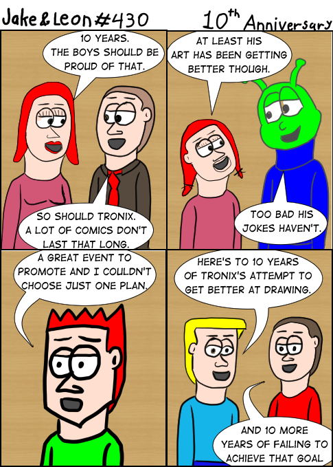 Over on my deviantART page I posted a remake of the one panel preview for the Jake & Leon comic to highlight how far I’ve come as a cartoonist. Do I have a ways to go? Sure, but I’m getting there. That’s what matters.