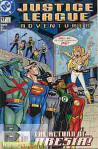 Aresia has a device that can control the minds of men and she uses it on Superman, Batman, Martian Manhunter, and Green Lantern and has them steal weapons around the world. It’s up to Hawkgirl, Wonder Woman, and the Flash to find a way to destroy the device, with the Flash infiltrating in drag but gets found out. He also has a way to counteract the device while the lady Leaguers go after their friends. At least Aresia gets away from men…in an all-women’s prison as Flash notes.