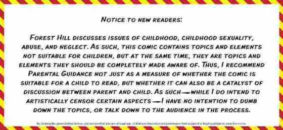 In a previous Internet Spotlight I talked about the webcomic Forest Hill. It’s a comic by T. Rodriguez that started out being about an anthropomorphic world where a new family entering the titular town adjusted to their new lives as well as the family they befriend. As the comic went on the story the comedy was toned down as it ended up taking a rather dark turn. The children dealt with violent bullies, a pedophile ring, sexual abuse and rape. For more on that check out the link earlier.