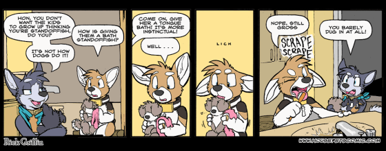 That’s nothing compared to the humans, who mattered early on as the “parents” of the pets but now are just an afterthought occasionally brought in just to keep the name making sense and tangentially contribute to the passive attempts at equality by the ferrets. I’m not saying he should get rid of any of them but more often than not they hardly matter. Because the cast is so big I often can’t remember character’s names, like guessing Fido is the right dog dating Sabrina, and only a couple of the wolves have designs I can tell them apart with and even then Jack and Miles are the only names I remember. And I only started my binge reading in the past week or so.