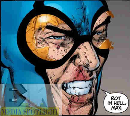There is both good and bad in this sentence. As he knows he’s about to die he thinks about how the name will continue on, the legacy will not die, and although Jaime had to push himself into the legacy rather than a passing of the torch like Dan to Ted. He’s a hero to the end. However, now even Ted is dumping on Ted. Of course he could take the offer. Look at his situation right now. The Justice League abandoned him. Max is responsible for the attack on Booster, which was probably a mistake to mention. Booster Gold is just Michael Carter, a dude with advance technology. He’s not a god and the two work very well together. But the League treat him like dirt, there’s rumors surrounding Doctor Light, he knows what happens with tech like the Atom’s size-changing powers ending up in the hands of evil or insane people like Jean Loring, and he really has no reason to protect these people. Checkmate would give him access to new tech to play with and advance. He could get back at Batman for possibly robbing his company and bankrupting it. He could show them that he has merit. This is not the way Max tries to convince him to join up, instead just ranting about how terrible metahumans are, like they’re the X-Men and he’s one of the many anti-mutant extremists that attack them from time to time. The thing is had he sold it right joining retconned Checkmate might have actually been appealing to him. However, while this has been the “dump on Ted Kord” story it’s also a story that showed that when the chips are down…