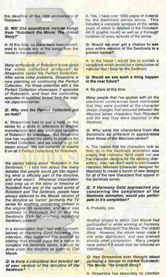 […] Carl Macek Discusses Robotech II And The Movie: Posting an interview with Carl Macek in various Academy Comics Robotech titles gives some insight as to what Macek actually planned to continue the odyssey of Robotech. […]