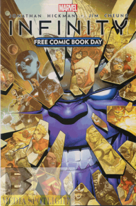 It’s kind of odd for a back-up story set in I’m presuming the regular Marvel universe to show up in a comic not set in any Marvel universe, as Logan’s Run was based on the movie and possibly the TV series somewhat based on it. However, this story gives me a bit more insight as to what “Infinity” may be aiming for. In that story the planet’s prized hero and king’s son was killed by Glaive and his Outrider forces. In this story Thanos crushes a sacred flower, I’m guessing the last one on the planet, to weaken the planet’s opposition to his rule, so perhaps that’s what he’s looking for. (Good luck. Earth has tons of those.) In this story, The Destroyer tries to stop Thanos but must abandon his mission to save a woman and her daughter from being killed, which ties into his backstory. I don’t know the character, but I was more interested in this than the main story. If anything it tells me more of what Thanos is up to this time than the actual preview.