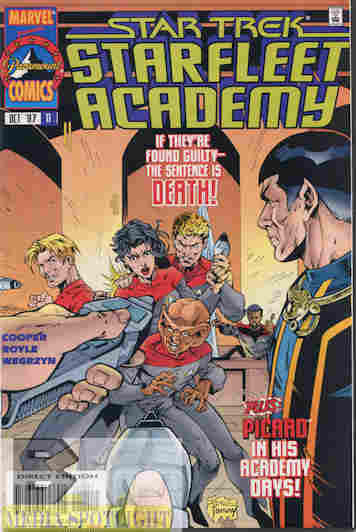 Being first-year cadets and with no record of the battle with the Jem’Hadar on Talos, Starfleet (in continued lack of wisdom we’ve been seeing out of them on this site lately; see also the Chapter By Chapter review of Star Trek: Prime Directive) has opted to blame it on Talosian illusions (with no explanation as to why they did it and let them go, I noticed) and proceed with the trial. This is while Pava is still recovering from her injuries and Edam was pumped full of medication that has rendered him unconscious. Pradesh however insists the trial happen, with Spock speaking on behalf of Omega Squadron. He brings in a Starfleet officer who worked with Jean-Luc Picard during their academy days to save the life of a friend that required a cure that went against the genetic manipulation rules at that time. After some serious mistakes lead to some serious challenges the woman is cured…and is now one of the judges at the trial. In the end it’s agreed they’re all guilty but while clemency is recommended by the other judged Pradesh is the one in charge and passes sentence. Nog is spared because he’s the first Ferengi in Starfleet and wouldn’t be aware of the Talos rules, but the others are sentenced to death.