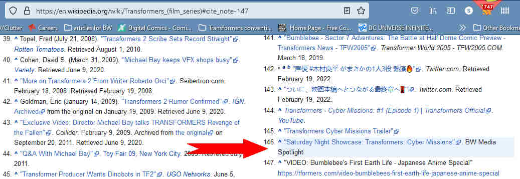 […] BW’s Daily Bragging: I’m A Wikipedia Source: Yes, Wikipedia is using my Saturday Night Showcase article on Transformers: Cyber Missions as a credited source. That’s really neat, whatever mess Wikipedia is. […]