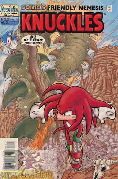 Knuckles and Archimedes are forced to work together to survive the desert and return to the former location of Echnidopolus. Along the way the spirit of Knuckles’ father leads him to an oasis…which disappears after they rest and supply themselves with food and water. Eventually arriving at Enerjak’s “Nekronopolis” the pair deal with Enerjak’s robot guards but face a worse threat…the mind-controlled Chaotix!