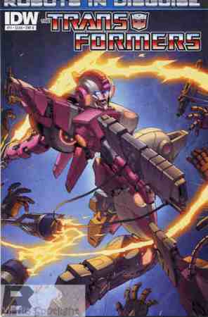 I made a whole article about Arcee’s history, including what was done in IDW, that actually earned this site a research credit at TV Tropes. Simon Furman is one of those writers who do not believe Transformers should have a gender despite the use of male pronouns and the first wave of Autobot Pretenders using male humans as their template. (Yes, I know, boys line.) However he still insisted on putting Arcee into IDW’s Transformers universe. His solution?