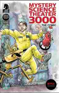 I haven’t read the full miniseries but between this and Brian Heinz’s review below I don’t think I want to. What makes the show fun is watching the host and robots making fun of the movie, not taking part in them. There is a special balloon design for when dialog is inserted into the comic but it comes off less as riffing and more parody, and while it isn’t a bad thing necessarily it doesn’t work for me as someone looking for a comic version of the MST3K experience.