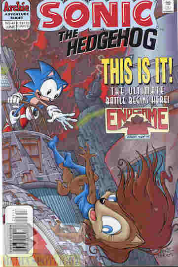 During a mission to Robotropolis where the Wolf Pack is aiding the Freedom Fighters, Sally is worried. Not because of the mission but because her father is secretly healed and warning her that Sonic is a traitor. During the mission the others believe they see Sonic cutting her rope, dropping her seemingly to her death. She’s rushed to Knothole but Dr. Quack pronounces her dead. The King immediately puts Sonic on trial, if you want to call it that since he’s immediately declared guilt, and sentenced to the Devil’s Gulag. However, Draco and Hershey the Cat know something and Draco is thrilled…and so is Robotnik as he managed to watch it all from his new headquarters!
