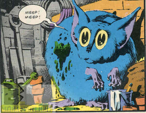 Finally, before this really long intro chases you all off, I’m working from the version that I have, namely the aforementioned Marvel US reprints. So the Meep is blue because the original comic was black and white and Marvel US colorist Andy Yanchus made him blue. So he’s blue in these pictures. Sorry if that bothers you, but I kind of prefer it. It makes him cuter, which is kind of the point of his twist. With that, let’s get on with the story.