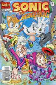 Finding another weak point between zones, Sonic and Tails are dragged into the dimension of Horizont-Al and Vertic-Al, two beings in a weird dimension Sonic met back in his second issue (it doesn’t say if it’s the miniseries or the ongoing). They used to be friends, but the Ultimate Annihilator messed up their dimension and now they’re robots at war. They attempt enslaving Sonic and Tails to use as their pawns but their own friendship allows them to fight it off. Too bad the Als can’t say the same as our heroes manage to escape.