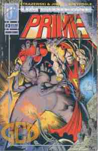 At last, the origin of Prime, the result of an experiment to clone new soldiers through human beings. The experiment did not go as planned, so Kevin just creates a new body around his old one. So does one of the mad scientist’s other creations, as one of the assistants is Organism 8, one of the early experiments. They battle, the scientist (did I miss his name somewhere in these three issues? I thought he was a government agent, not a government scientist) wanting more samples of Prime’s shell body. Prime eventually manages to defeat the monster by tossing him into the computers, the explosion hurting the scientist and allowing Prime to escape. Turns out the assistant is the scientist’s son, Duey. Not wanting to lay this on his parents (though his father clearly knows something), Prime seeks out the hero Hardcase…but ends up ruining Prototype’s movie shoot instead.