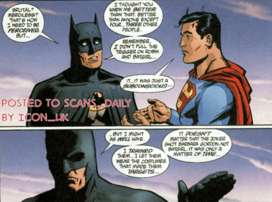 Like you say there’s a larger point too that the world should be big enough to tell a variety. I don’t care for The Authority but if you want your murderous Batman/Superman there you go. I don’t need for them to be changed, and I don’t need Bats or Supes changed to be like them.