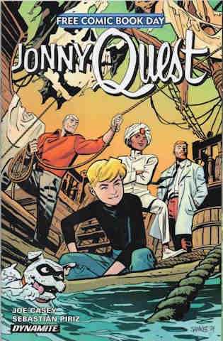 The first story sets Team Quest in the original show’s time period of 1964. Frankly I wouldn’t have minded a modern day story. I actually liked the 1986 show and the TV movies even if I am in the minority. I do like that they did go with the classic version of the characters. While The Real Adventures Of Jonny Quest was a good show and not a bad reboot, it’s not the iconic depiction. At any rate, a storm strikes one of Doctor Quest’s new inventions that they were testing, not expecting rough seas in the area they were testing. After the storm ends they return home, only to be attacked by security systems they didn’t set up, a version of their boat in decay, and unknowingly being watched by someone with a lot of monitors.