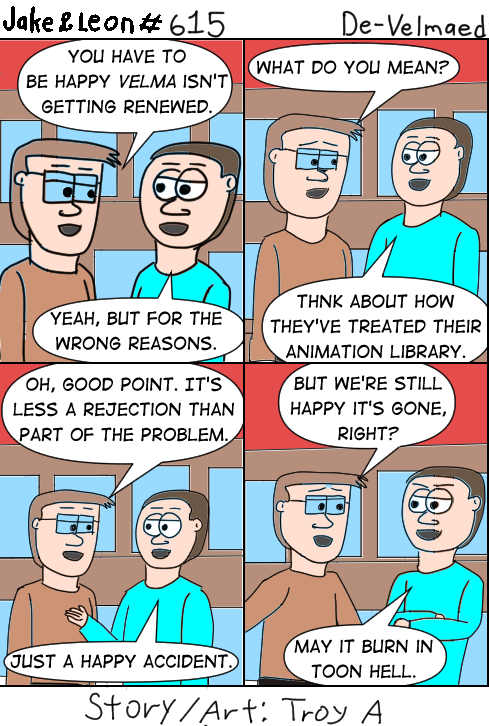 Just something I realized. I’m happy that Velma won’t get another season, but I’m not sure anybody really learned any kind of lesson. This mistake will happen again. It’s just that right now Warner Brothers Discovery, despite having arguably the biggest animation library on the planet, really doesn’t seem to care about that library. Tubi and MeTV Toons are making better use of their stuff than they are, and WB has two cartoon channels, a family channel, and numerous streaming channels as well as their pay-to-watch Max service. It’s a real shame for us toon lovers, but at least it got rid of this monster.