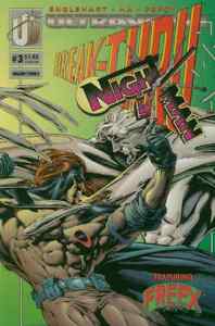 Between the size of LA and the Break-Thru event, Night Man is having trouble finding Mangle and the Freex (continuing from issue #6 of their comic), but comes up with the idea of using pirate radio to reach them. Michael/Plug is the only one willing to listen to him and tells the hero where to find them. Learning of the Strangers’ theft of the shuttle, Mangle is sure the Hunts will be at the base, but Night Man isn’t the only thing waiting since JD had robots at his disposal. Plug works with Night Man while he tries to reach the kids, but in the end it’s Night Man alone against Mangle. Night Man manages to wound him and promises to get him to a medical facility that Hunt doesn’t control (if he can find one, according to JD). The kids escape in the confusion, but our hero still hopes to reach them.
