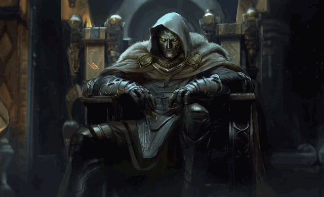 A better image of Doom, chillin’ on his throne. A bit closer to his colors. I’m not sure if they’re darker because of the art or because it’s made for a movie in the 2020s, where color has gone to die. Truly we live in a world without Rainbow Brite and it is really is the dark times.