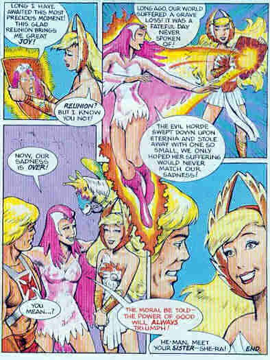 That’s not how it was supposed to happen. At least in the mythology of Eternia. The show and other media did it so the Princess Of Power toyline could exist and Filmation could capitalize on the strong women of He-Man & The Masters Of The Universe with a girl centric show that boys might also enjoy the show the way their sisters did their show. Then they could play together if Mattel was smart enough to make the two toylines compatible. Which they didn’t due to internal struggles between the boys and girls divisions I won’t get into here.