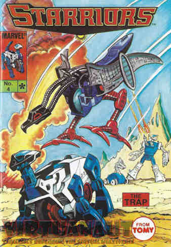 Instead it’s back to the Starriors, the Protectors search for Man and the Destructors search to stop them…or at least the one who actually knows their goal. Based on the Tomy toyline, we’re up to #4 in the mini-comic series, which is the same number of issues as the shelf comic, but not our last mini-comic. All of those thus far are up and reviewed if you want to do a search. This one features a Starrior that shares the name with my favorite GoBot. This won’t be a problem for the shelves because there’s no toy of him. It’s a character created for the comic. Also, he’s dead. Oddly, having one less hero to fight isn’t the good part for Slaughter Steelgrave. It’s how he plans to turn this against Hotshot and his crew that will make this worthwhile for him.