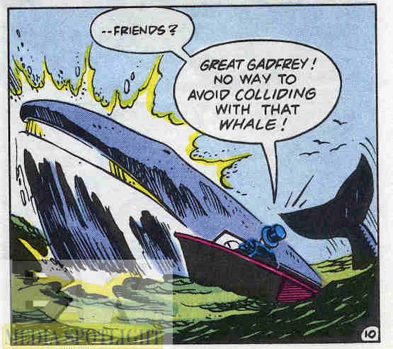 So Aquaman blocks his path with a whale! Take that, Team Four Star!!!! WHALES!