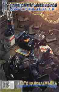 PROFILE: IT IS SAID THAT SOUNDWAVE CAN HEAR A FLY SNEEZE. IT IS ALSO SAID THAT BENEATH HIS SMOOTH-TALKING, AFFABLE SURFACE BEATS THE QUARTZ PULSE OF A BLACKMAILER. THOSE WHO KNOW THESE TWO FACTS ABOUT HIM ARE VERY CAREFUL ABOUT WHAT THEY SAY WITHIN HIS EARSHOT. SOUNDWAVE IS THE ULTIMATE OPPORTUNIST AND WILL USE ANYTHING HE CAN TO ADVANCE HIS STATUS IN THE EYES OF NEGATOR. HE DOESN’T WORRY ABOUT WHAT OTHERS WILL THINK OF HIM BECAUSE HE KNOWS HE IS NEARLY INDESPENSABLE. THE OTHER DECEPTICONS PRETEND TO LIKE SOUNDWAVE RATHER THAN GET ON HIS BAD SIDE. AS BUZZSAW EXPLAINS, “SOUNDWAVE ALWAYS HAS THE LAST LAUGH.”