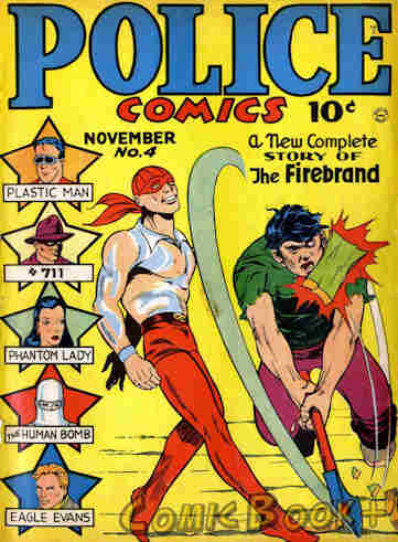 So we have four pre-DC characters: Plastic Man, Firebrand, the Human Bomb, and Phantom Lady. Plus a bunch of other characters. Time being a factor as I try to put my life together I’m not sure how long I can do two of these a week and might end up putting this in Golden Age Fridays in the future. As of this writing I haven’t decided yet so don’t hold me to it. Mostly I’m just trying to pad out the homepage again since for these I keep the credits with the stories, if we have any.