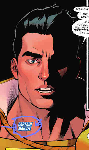 I’m surprised none of the usual sites I follow took notice of this. Yes, the story is about supervillains being granted potential amnesty to prepare for another Darkseid invasion. The stakes can’t be any less than all of everything nowadays. Plus modern day writers want to blur the lines between “hero” and “villain” to the point that it doesn’t exist, which I’m sure I’ll be able to complain about again in the future. On the other hand, look what’s circled. It’s Billy Batson’s superhero name.