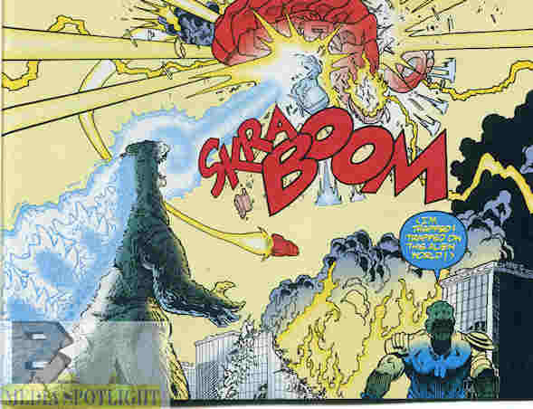 Godzilla blows up the Simians of Black Hole Planet 3 (from Godzilla #8)