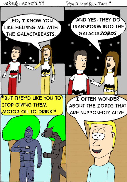 Actually, there are a lot of jokes when it comes to Power Rangers Lost Galaxy. The outfits resembling Charlie Brown’s has been done by the internet. There’s the fact that nobody seems to know these giant monsters are on the station, or that it isn’t clear if anyone knows who the Galaxy Rangers are or not. After months of mulling over which joke I wanted to do, I figured this was the best one to tackle the “Zords as living beings” angle.