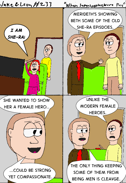 I have nothing against strong women. She-Ra was a strong woman. He led a rebellion against the evil leadership she used to be part of, and could lift about as much as He-Man, plus other cool powers. However, Beth prefers women who are female. There’s a place for strong women who are feminine. I’m not calling for absence of one but the return of the other.