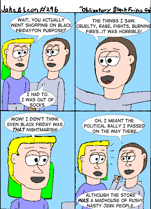But at least it’s more moral than Black Friday shoppers who forget they’re buying for Christmas gifts, push each other down, step on each other, and fight like 3-year-olds over the sale of a plush toy, and completely miss the whole point of Christmas. Leon was probably better off wearing slippers for a few days.