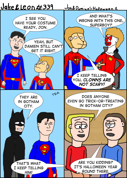 I made this one mostly to play with the tablet, but the gag came up first. I don’t think I have a third one in me. Superboy’s “lion head” (yes, that’s supposed to be a lion head) is a nod to Action Comics #243 and Superman #165 (pre-Crisis, before the first renumber), in which Circe turns Superman into a lion man until he agrees to marry her…because women trying to trick or force Superman into marrying them was something the Silver Age overdid a lot.
