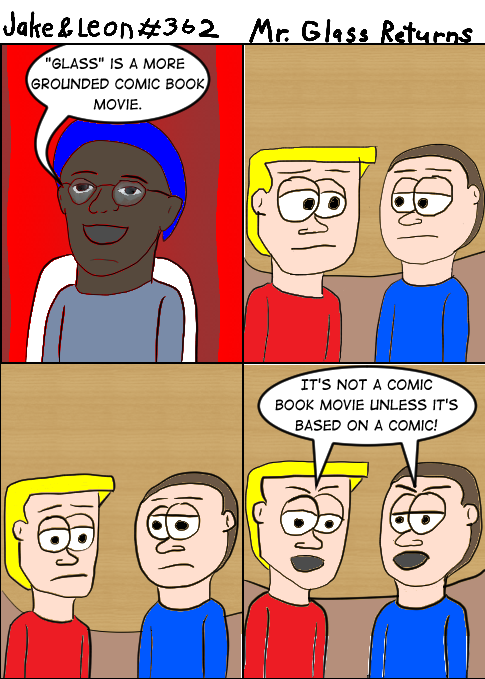 The original punchline was “that’s not what a comic book movie is”, referring to the “grounded” part but I think it depends on the comic. At best that would be Hollywood’s definition since they’re part of the media culture that looks down on comics and video games. Books are the only ones allowed into their club. But even then M. Night Shyamalan’s sequel to both Unbreakable and Split (http://variety.com/2018/film/news/universal-unveils-first-footage-of-samuel-l-jackson-sarah-paulson-in-m-night-shyamalans-glass-1202786702/) doesn’t qualify as a comic book movie. And yet in the article linked to that’s actually Samuel L. Jackson’s quote in Variety. It just rubbed me the wrong way and I’m not even sure it really is the first.
