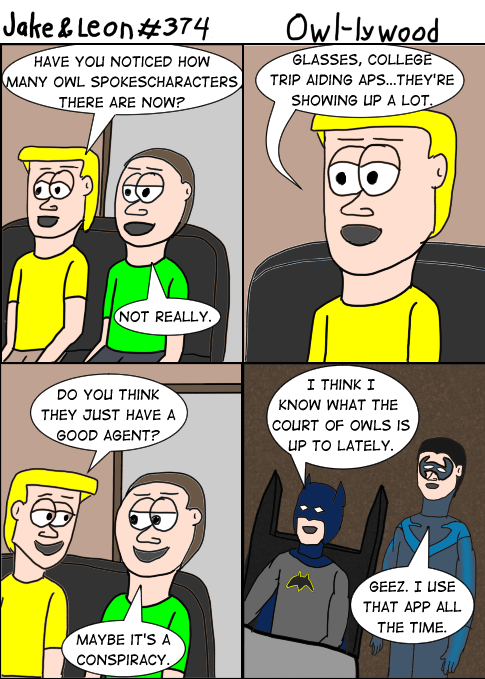 There are times I notice odd things. Trip Advisor, America’s Best Glasses, and I forget the college name right now all had ads featuring owls. I saw them close enough to realize it and thus came a comic. I actually had to decide between the Court Of Owls gag and showing an actual owl agent, but this had the better fit for my site.