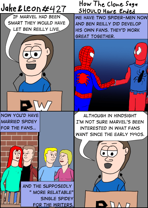 I would have drawn all the other Spider-Folks in panel two but I didn’t have time. That’s a lot of spider-powered people.