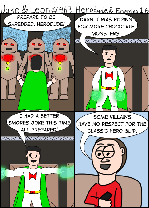 A lot of copy/oasting in this one in hopes of getting this up in time. (I failed. Maybe if the laptop had been working during the power outage I could have made it. This also explains why the white in Leon’s eyes ended up skin color.) The gingerbread bots came from the previous strip while the background in panel 4 was copied from panel 2. Everything else was new though.