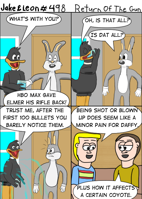 This was after announcements that Elmer would get his rifle back in season 2 of their Looney Tunes shorts. I’m not sure why they bothered taking it away given how undeadly the rifle seems to be for Daffy, Elmer, and other Bugs foes. And yet Bugs always treats being shot like we normal people would. That sends a few different messages, like “how do the villains survive this and what does that say about evil?”.