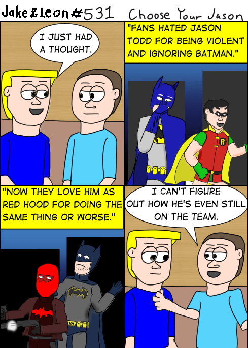 Sometimes a random thought hits me and it becomes a comic. I mean, Jason was so hated that they voted him out (unless the rumor of the “box stuffing” via automated phone dialer is true) and now everybody loves even worse Jason Todd. I don’t understand people.