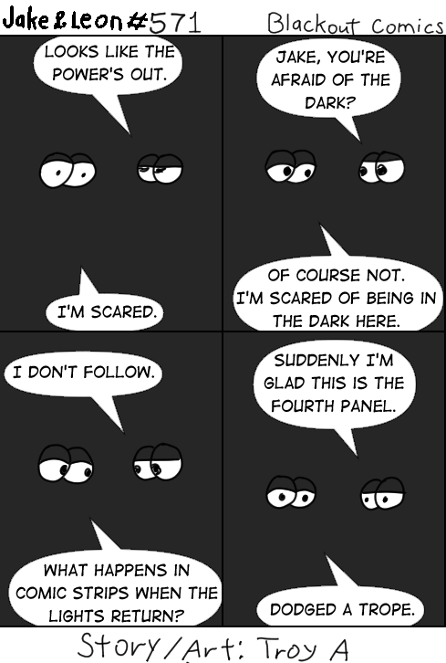 I had a power outage the week before and thinking about how to make a comic around it led to this, and totally not being lazy because I didn’t have much time the week I made it. Why would you say that?