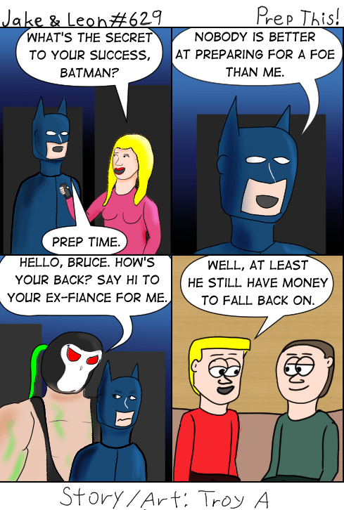All that talk about how Batman can totally defeat anyone with prep time. Okay, what if he doesn’t have time to prepare? Meanwhile, Bane has out-prepped Batman enough to learn his identity, break his back (and it was Jean-Paul who got revenge for Bruce on that one), and ruin his upcoming marriage to Selina Kyle. Excuse me if I don’t buy “prep time” as one of his skills. Or is Bane just better and this just proves the power of “prep time”? I don’t know. It’s too dumb an argument for me to care, really.
